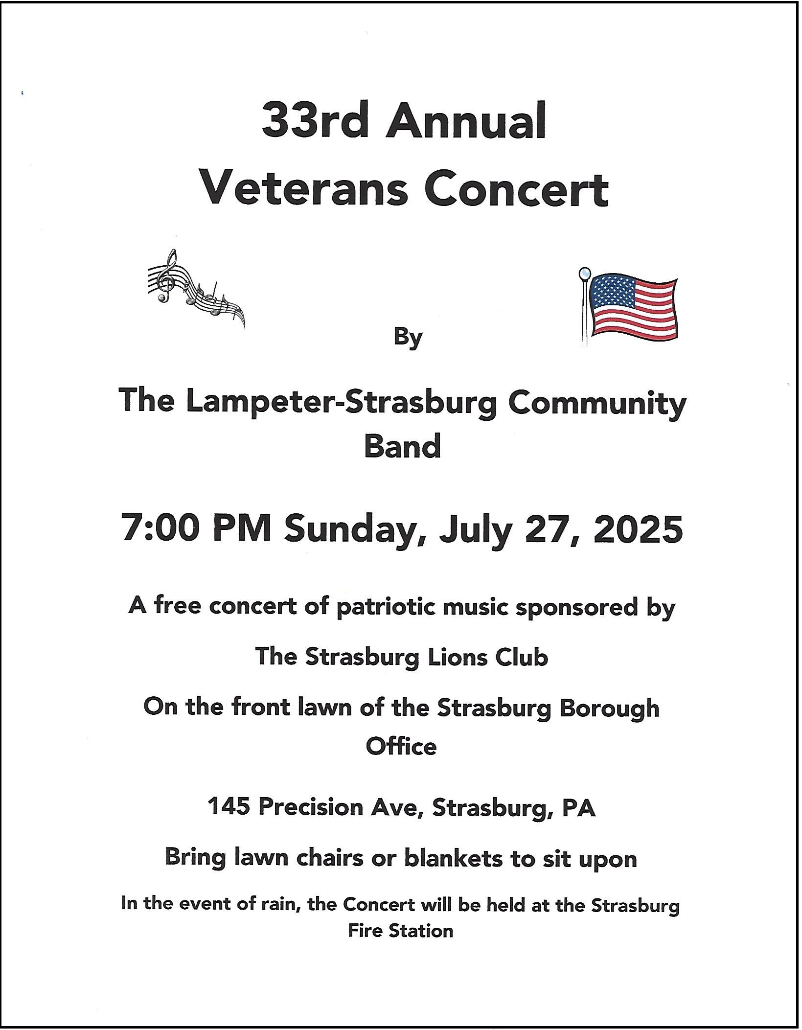 An annual patriotic concert by the L-S Community Band, and sponsored by the Strasburg Lions Club! The concert will be held on the borough office front lawn, 145 Precision Avenue. In case of inclement weather, the concert will be moved to the Strasburg Fire Station, 203 Franklin Street. Bring a chair or blanket, and family […]